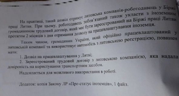 2. Зарегистрированного трудового договора с литовской компанией, выдавшей доверенность на управление транспортным средством.