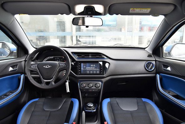 Внешний вид Chery Tiggo 3XE от бензиновой версии отличается решеткой радиатора и фарами. Последние украшены голубым узором.