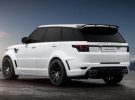 Стоимость такого тюнинга - 29 509 евро. За эту суму владелец Range Rover Sport получает совершенно иной передний бампер с большими отверстиями для вентилирования моторного отсека, сплиттером в нижней части и светодиодными огнями дневного света, расширенные колесные арки, переделанные пороги, спойлер в конце крыши, расположенный поверх штатного аналога, и видоизмененный задний бампер с четырехреберным диффузором и парой двойных 100-миллиметровых стальных концевиков выхлопной системы.