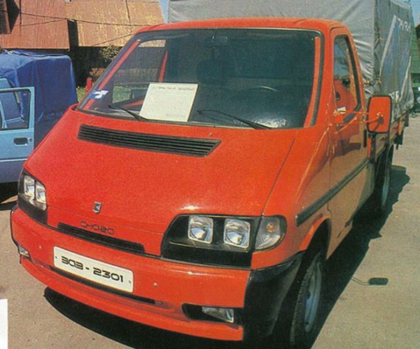 Транспортное средство грузоподъемностью в 1000 кг оснащали 1,7-литровым бензиновым двигателем. Внешне машина напоминает всем известную "ГАЗель".