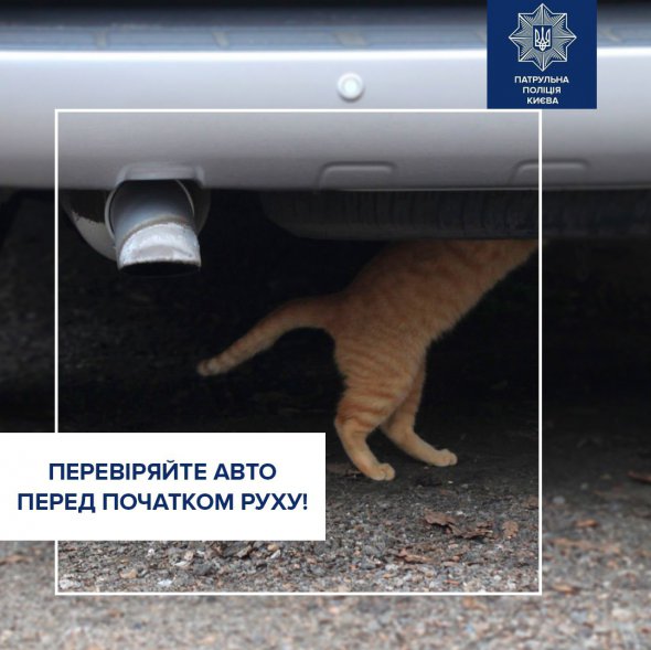 "Советуем перед тем, как завести двигатель - постучите по капоту и проверьте указанные места. Учтите, что пугливые котики могут спрятаться еще глубже", - пишет полиция.