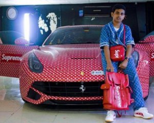 15-летний подросток из Дубая Рашид Белхас создал уникальный дизайн личного Ferrari на основе монограммы Supreme x Louis Vuitton.
