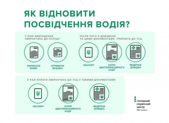 Для перевыпуска "прав" нужен паспорт, идентификационный код и медицинская справка. Восстановить документ, дающий право на пользование транспортным средством, можно в любом сервисном центре МВД Украины.