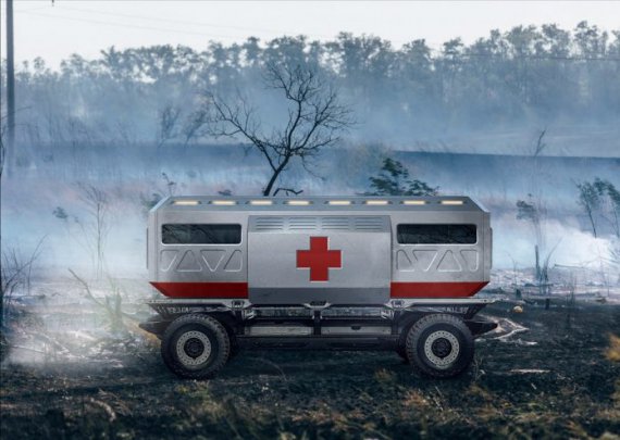 "Скорую" создали на платформе SURUS. Эта установка гибридная. Работает с помощью водородного двигателя или от двух электрических приводов. Автомобиль разработали с учетом дорожного и внедорожного использования.