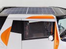 На крыше стоят солнечные панели, чтобы помочь пополнять запасы энергии в батареях. Лобовое стекло отличается обратным наклоном.