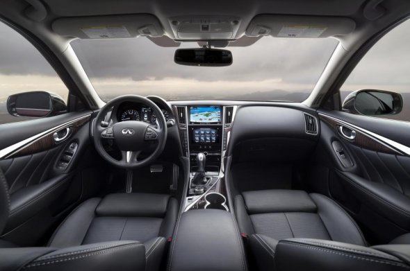 На выбор покупателям предлагают различные варианты внутренней отделки, включая сиденья из натуральной кожи. Интерьер нового Q50 представлен в трех цветовых решениях: Wheat (бежевый), Graphite (черный) и Stone (серый).
