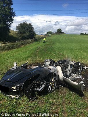 Известно, что водитель Ferrari вылетел с дороги и пролетел 50 м по полю, прежде чем транспортное средство загорелось.