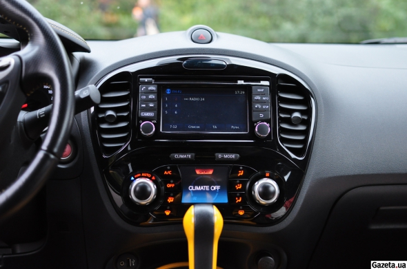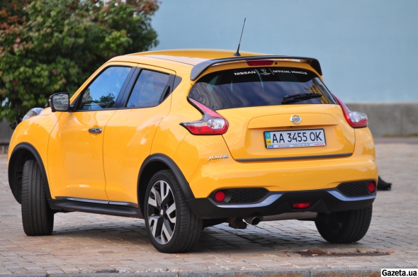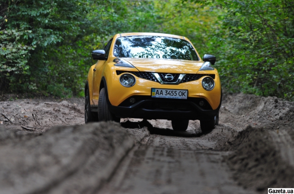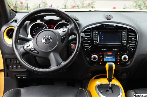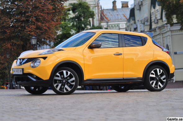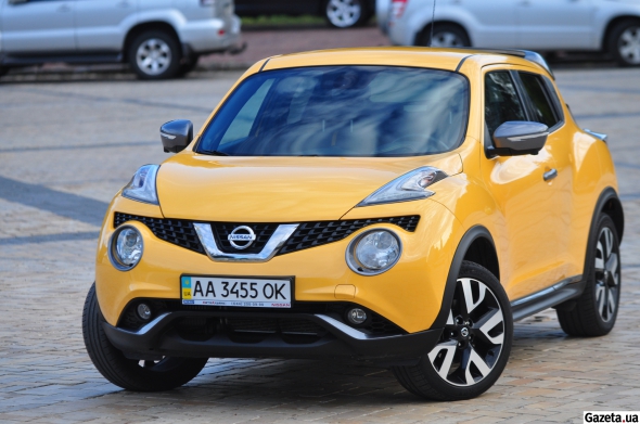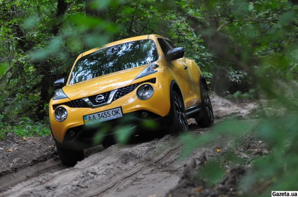 "Juke - это прием выталкивания плечом в американском футболе. Этой моделью Nissan бросил вызов своим конкурентам, выталкивая их из лидеров продаж", - объясняет Gazeta.ua Владимир Иванов из компании Nissan. Он ведет к желтому автомобилю с полным приводом, 1,6-литровым турбированным двигателем на 190 л.с. и вариатором. Это Juke в полной комплектации стоимостью 763 930 грн. Его и берем на тест-драйв.