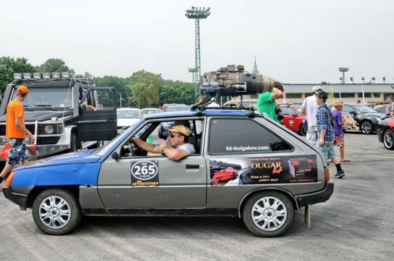 В одно из самых необычных мероприятий - Шоу Крейзи-Каров - попала украинская "Таврия" с реактивным двигателем, сконструированная Конструкторским Бюро "Булгаков". Примечательно, что это уже вторая модификация украинской машини этой марки. Раньше она участвовала в конкурсе с крыльями как у самолета. "ТаврЛайнер", как ее назвали создатели, разрабатывался как тренажер взлет-посадка для пилотов. В основе ЗАЗа крылья-самоделки, клепанные, внутри дополнительное оборудование и каркас безопасности.