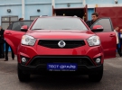 После торжественного восхождения с конвейера одного из новых Ssang Yong Кorando, нас пригласили познакомиться с машиной. Уже издалека видна разница между старым Corando и новым. Рестайлинговая модель имеет сдержанную решетку радиатора без хрома, другие противотуманные фары и измененные задние фонари. Линии нового бампера дизайнеры также немного подкорректировали - изменили форму подиумов для противотуманок и лишили центральную часть хромированной накладки. Силуэт нового автомобиля стал более динамичным .