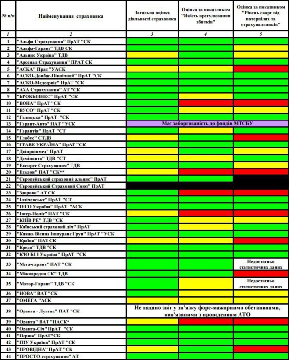 В МТСБУ на сайте есть раздел "светофор", где деятельность страховой компании оценили цветом светофора. Если красный - в компании критическая ситуация и есть большие задолженности перед клиентам. Желтый - есть риск, что страховщик не выплатит компенсацию клиенту вовремя или же вообще не покроет убытки. Зеленый цвет свидетельствует о том, что в страховой компании исправно выполняют свои обязанности.