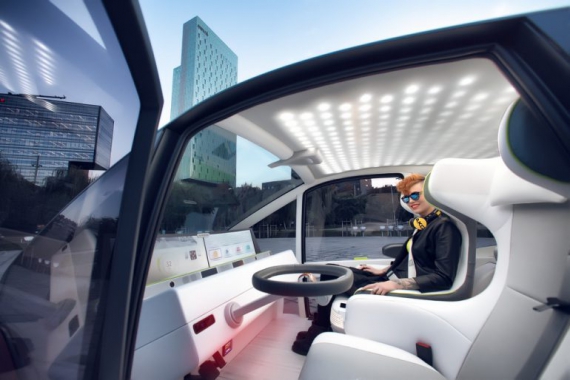 Электромобиль понимает голосовые команды и жесты. Для взаимодействия с пассажирами за пределами салона используются проекционные подсказки.