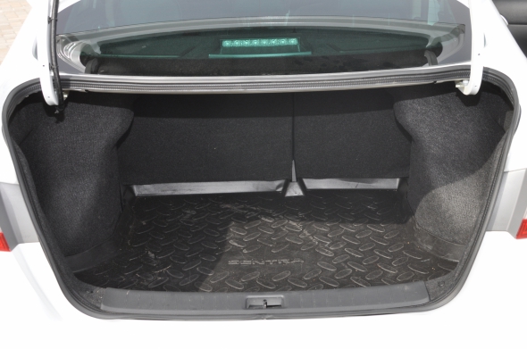 В Nissan Sentra самый большой багажник в своем классе - 511 литров. При этом он имеет низкую линию загрузки и широкий проем. Арки колес размещены таким образом, что они почти не мешают класть объемные вещи. Хотелось бы, чтобы вместо массивных петель крышки багажника производитель установил амортизаторы, как на Fiat Linea, и чтобы фальш-пол состоял из двух частей, как в Skoda Rapid. Это было бы практичнее. Однако японские специалисты больше внимания предоставили доступу к багажу. Багажник можно открыть тремя способами - из салона, с брелка водителя и с помощью кнопки над номерным знаком. Приятно, что с внутренней стороны крышки багажника установили ручку для закрывания. Ею удобно пользоваться, когда авто грязное.