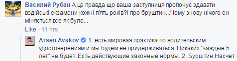 "Есть мировая практика по водительских удостоверений. И мы будем ее придерживаться. Никаких "каждые 5 лет" не будет. Есть действующие законные нормы", - написал на странице в Facebook Аваков.