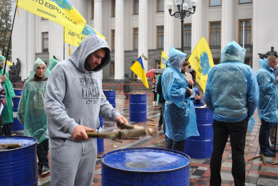 Автомобили перекрыли ул. Грушевского - от Европейской пл. до здания парламента. Все припаркованные в три ряда. Владельцы требуют отменить акциз на ввоз авто на иностранной регистрации, предлагают отменить нормы Евро-5 для старых машин и ввести техосмотр для них. Еще одно требование - прекращение преследований авто на евробляхах со стороны правоохранителей.