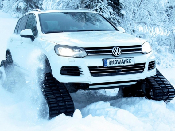 Volkswagen Snowareg построили в шведском подразделении концерна: внедорожник, предназначенный теперь для путешествий по целине, приобрел гусеницы вместо колес. Тиражировать проект разработчики не планируют, но в европейских СМИ его уже назвали очередным транспортом для Санта Клауса.