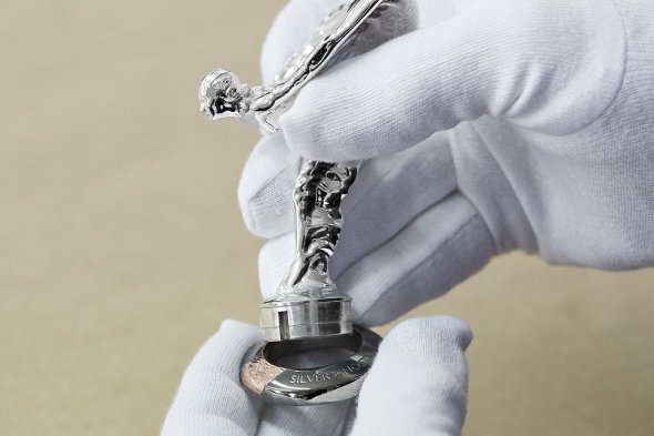 На основании каждой фигурки "Дух экстаза" вытеснят клеймо AX201. Он повторяет номерной знак оригинальной Silver Ghost.