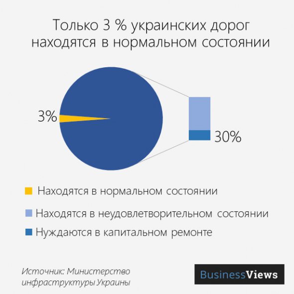 Украинские дороги в плохом состоянии. Страна занимает низкие позиции в рейтингах автомобильных дорог.