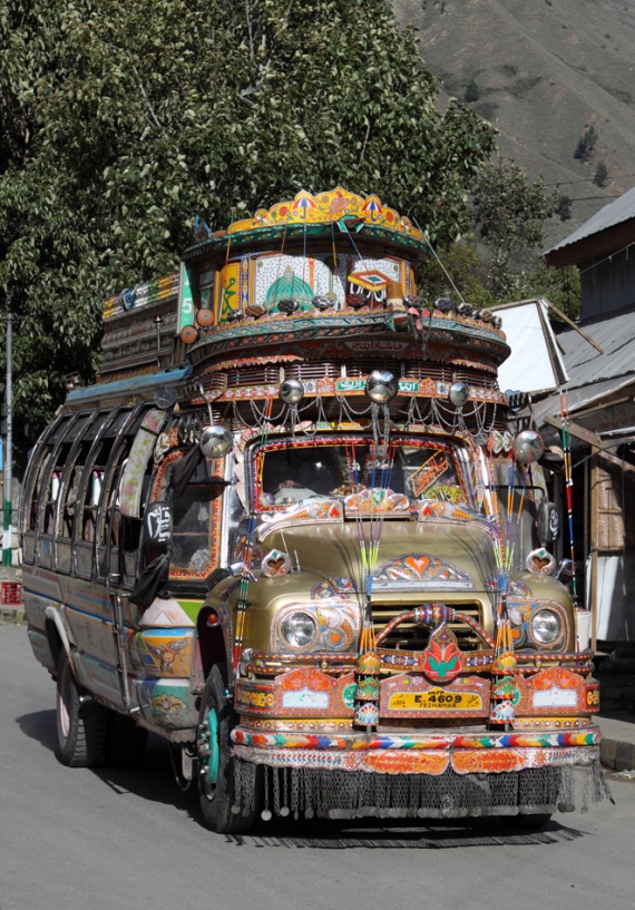 Большегрузные машины в Пакистане – предметы искусства. Пожалуй, таких красивых грузовиков не встретишь ни в одной стране мира. На украшение уходят годы и целые состояния. Иногда бижутерия не дешевле самого грузовика. Для росписи кабины и кузова приглашаются лучшие художники. Грузовики представляют разительный контраст с однотонной местностью. Да и сами водители в своих платьях – плоть от плоти пыльной дороги и потому смотрятся на фоне красивых машин как недоразумение.