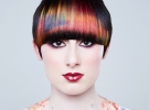 На волосы наносят яркие цвета, которые накладываются друг на друга. В результате пряди приобретают цвета радуги с определенными изображениями.