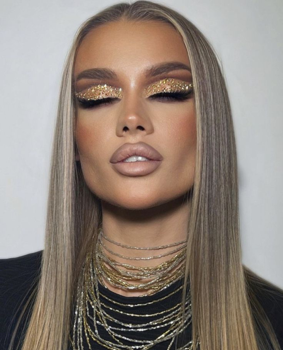 Макияж - один из основных элементов каждого образа. Если для повседневных аутфитов достаточно нюдовых цветов, то для празднования Нового года стоит поиграть с текстурами и добавить акценты. Обратите внимание на оттенки золотого, серебряного и цвета шампуня. В тренде также будут глубокий синий, изумрудный и бордовый.