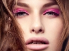 4. Модная фишка сезона - сочетание розовых теней с красной помадой. Перед нанесением розового, накрасьте веко спокойными сиреневыми тенями. Это сделает макияж более выразительным. Чтобы яркие тени не спорили с красной помадой, тщательно прокрасьте ресницы черной тушью. Нарисуйте тонкую черную стрелку вдоль линии роста верхних ресниц.