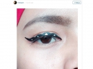 В сети блоггеры подхватили тенденцию очень быстро. Уже придумали несколько вариаций на тему. Например, в центр полукруга делать цветной акцент или заводить стрелку на внутренний угол глаза.
