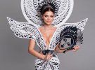 "Жизнь иногда оставляет дырочки в душах людей, но Бог составляет из них гармоничный рисунок, отражающий внутреннюю красоту человека. Душа - светлая и чистая, что и символизирует белый цвет костюма. Зеркальный блеск отражает внутренний мир человека", - описали идею наряда на Instagram странице "Мисс Украина Вселенная".