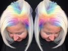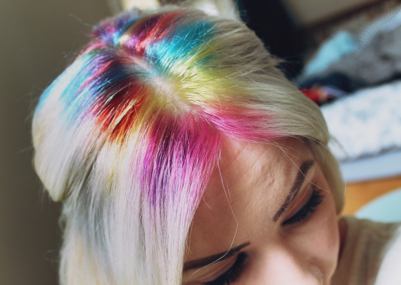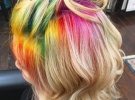 Модницы продолжают проводить эксперименты по экстремальным покраской. Сегодня огромную популярность приобрел тренд Радужного окраску. Особенность - краска наносит только на корни волос.