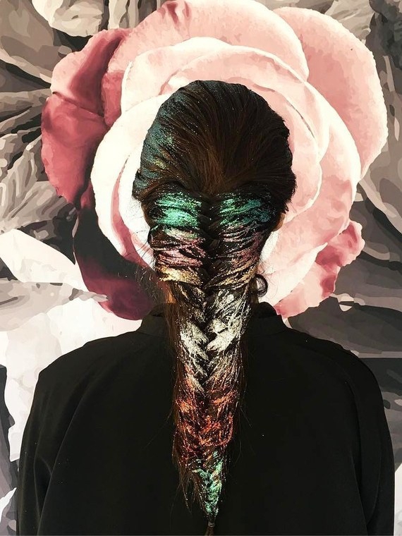 Тренд вдохновил производителей средств для волос на создание специальных гелей с глиттерами. Легко смываются и не вредят волосам.