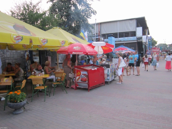 В столичном Гидропарке в воскресенье, 22 июля, людно. Отдыхающие становятся в очередь за холодным квасом и пивом. Напитки продают по 6-7 грн. Молочные коктейли и лимонад по 15 грн.