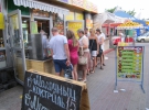 В киосках у входа в метро "Гидропарк" торгуют пиццей, шаурмой, чебуреками и шашлыками. 200 г шашлыков предлагают за 45 грн. Чебуреки с мясом, сыром, картофелем и капустой - по 35 грн.