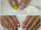 Присутствующие сложные и более простые дизайны. Один из вариантов - сделать наклейку на ноготь с изображением героя. Или сделать однотонную основу и нарисовать лицо покемона.