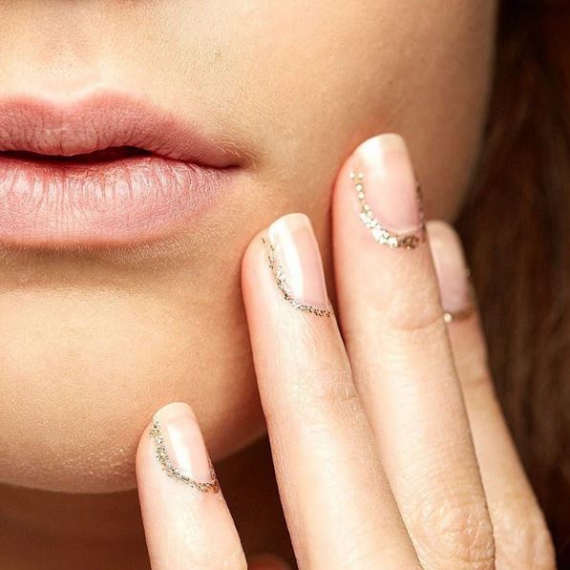 В ногтевом искусстве появился новый модный тренд - однотонное покрытие с блестками на кутикулах. Визуально маникюр выглядит красиво и изысканно. Придает ногтям правильную форму и добавляет цветному лаку сияние.