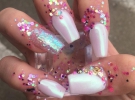 Недостатком маникюра является недолговечность. После первого мытья рук половина блесток смывается. Дизайн следует делать непосредственно перед выходом на событие.