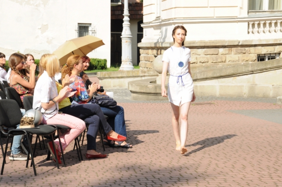 18 июля возле львовского Дворца Потоцких на улице Коперника, 15 молодая львовская дизайнер Ольга Стеблак показала свою третью летнюю коллекцию одежды из натуральных материалов. Свою коллекцию летней одежды для девушек и детей назвала "Ласточка". Цвета - белый и васильковый. Юбки от дизайнера - свободной формы, некоторые - в форме ласточкиного хвоста. Чтобы подчеркнуть естественность, все модели выходили на импровизированный подиум перед Дворцом босиком и в венках из васильков.