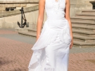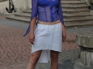 "Человек от Ольги Стеблак - свободный, не зацикленый на предубеждениях, не должен себя ограничивать. Идея одежды возникла в марте, когда на праздники прилетали из теплых краев ласточки. Работала несколько месяцев, создала 12 моделей одежды - платья, сарафаны, юбки, блузки. Использовала только натуральные ткани - белый лен, шифон. Это летние материалы. От них девушка никогда не потеет, они не парят и очень приятно трепещут на ветру. В моих моделях нет сексуальности или открытости, это максимальная простота силуэтов и форм. Максимум - это полупрозрачные синие юбки и блузки. На рубашках из льна нитями вышила ласточек и сделала трафареты из акварели ", - говорит дизайнер Ольга Стеблак.
