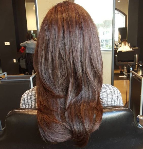 Вариант для тех, кому надоели "выгоревшие пряди" и балаяж. Насыщенный каштановый, однотонный, природный - будто волосы вообще не окрашенные.