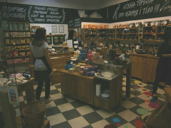 "Аглийська косметика" LUSH "делается вручную. Состоит она из свежих ингредиентов высшего качества: целебных трав, фруктов, цветов и эфирных масел. А в некоторых есть даже бельгийский шоколад. Хотя лучше косметику не есть, но некоторые клиенты говорят, что пробовали. Говорили - не очень вкусно",-смеется Оля.