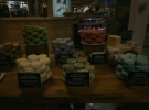 "Многие спрашивают: это у вас сыр, а это пирожные? А накатайте нам шарик мороженого, - рассказывает 20-летняя продавщица Оля Шевчук. - Вот пенки для ванны "Имбирный домик", они на вид как пирожное с розоватым кремом. Вот медовое мыльце с апельсином",-показывает на целую глыбу мыла, по виду похожей на кусок сыра.