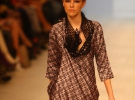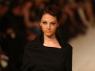 На вечер дизайнер предлагает просторные и длинные до пят платья. На ногах у моделей классические туфли на шпильках. Из цветов в коллекции преобладает молочный, черный и коричневый со всеми оттенками.