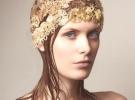 Стилист создает для девушек космические образы. Волосы заливает золотым напылением и делает уникальные прически с сочетаниями геометрических форм.