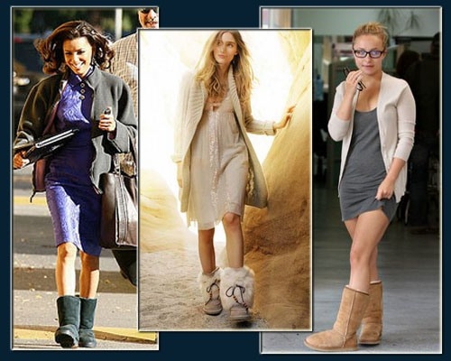 "Сапожки красиво смотреть с узкими джинсами и яркими леггинсами. Можно обувать угги с шортами из плотной ткани и колготками с интересным орнаментом. Такую обувь не стоит носить с короткой мини-юбкой. Ее следует обувать для прогулки, похода в кинотеатр, развлекательный центр, на шопинг. Ни в коем случае не надевайте угги на работу в офис, на свидание, собеседование или деловую встречу. Тогда казаться несерьезным, вас смогут отнести к представительницы какой субкультуры - эмо или готки ".