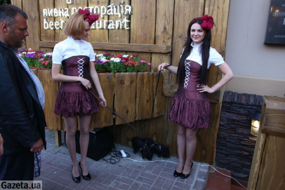 На улице Большой Житомирской в Киеве открыли ресторан "Черный поросенок". На входе гостей встречают две девушки с мини-пигами на руках.