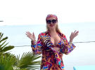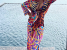 Образ дополнила пляжной накидкой, платком и солнцезащитными очками.