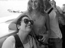 Энистон на фото позирует без белья, штанов и в невероятном платье в кабриолете.