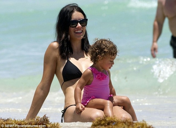 "Ангел" Victoria's Secret Адриана Лима на днях провела целый день на пляже в Майами в компании своей полуторогодовалой дочери Валентины. 30-летняя модель выглядела великолепно в черном бикини, которое только подчеркнуло все достоинства ее фигуры. Девочку же Лима одела в розовый купальник, пишет The Daily Mail.