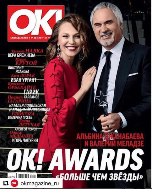 Альбина Джанабаева и Валерий Меладзе впервые появились на обложке глянца. Звезды позировали на страницах российского издания ОК !.