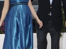 Алек выглядел, как всегда, щеголевато в темно-синем пиджаке, голубой полурасстегнутой рубашке и серых брюках. А его молодая жена, названная журналом Vanity Fair одной из самых стильных беременных звезд, была в бирюзовом шелковом платье без рукавов, с подчеркивающим ее "интересное положение" черным поясом. На ноги будущая мама не побоялась надеть туфли на высоченном каблуке.