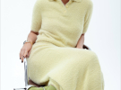 Перед камерой она предстала в белом комплекте белья, колготках в сетку и полупрозрачной блузке. Также она надела пастельно-желтое платье длины макси, салатовые колготки и серебристые босоножки на тонком каблуке.